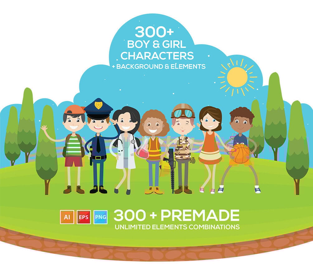• 300 Premade human characters, such as boy, girl, police, doctor, engineer, soldier, teacher and fireman